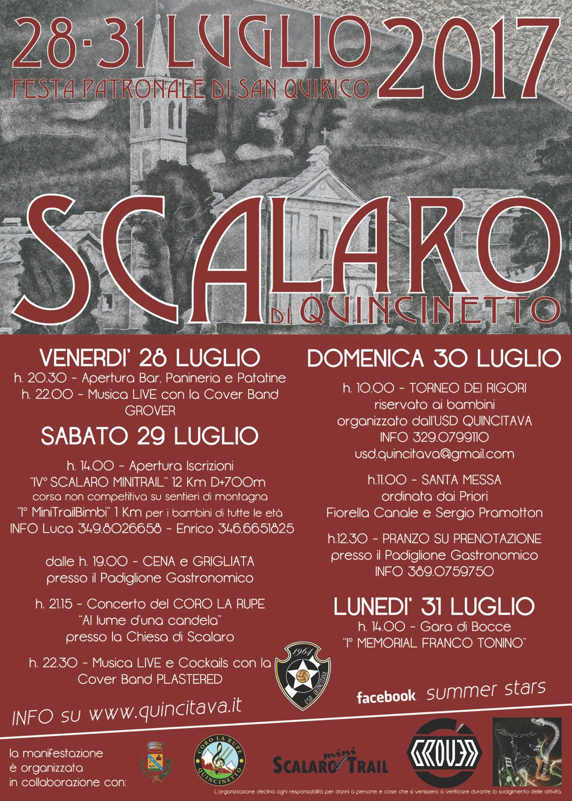 Festa Patronale di San Quirico dal 28 al 31 luglio 2017 a SCALARO di Quincinetto.