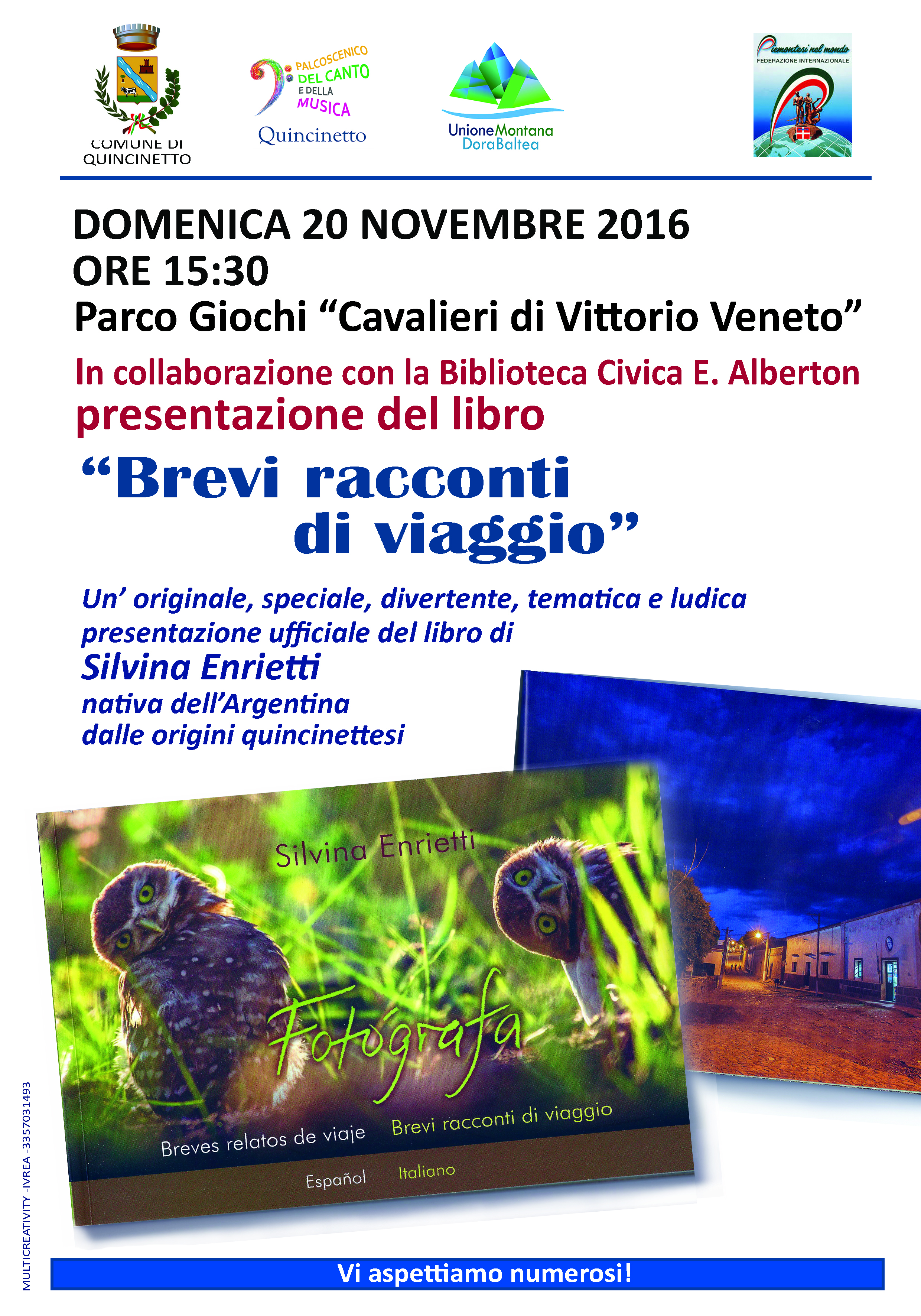 Domenica 20 novembre ore 15,30 c/o la Biblioteca Comunale presentazione del libro di Silvina Enrietti.