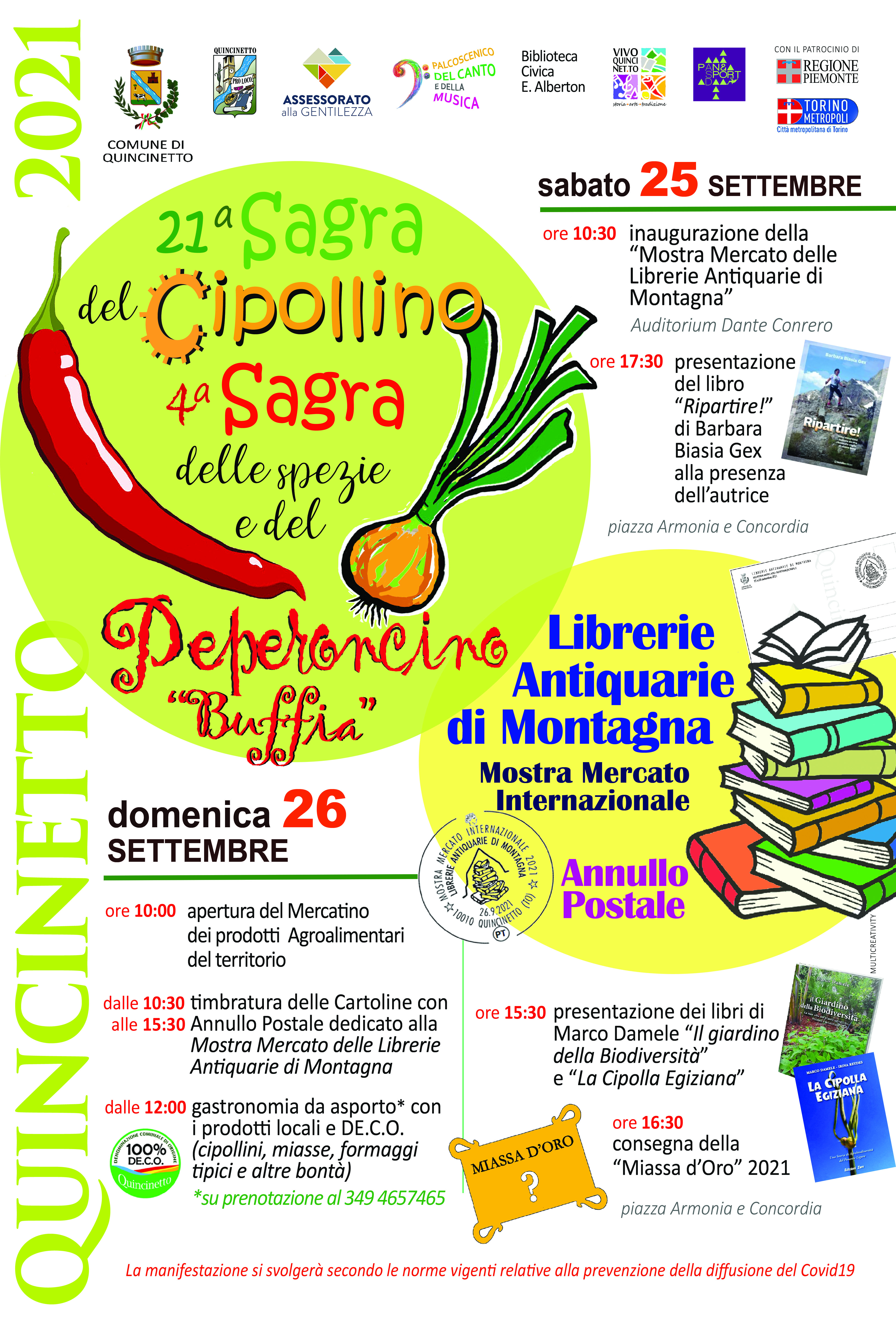 Sagra del Cipollino e Mostra Mercato Internazionale Librerie Antiquarie di Montagna il 25 - 26 settembre 2021