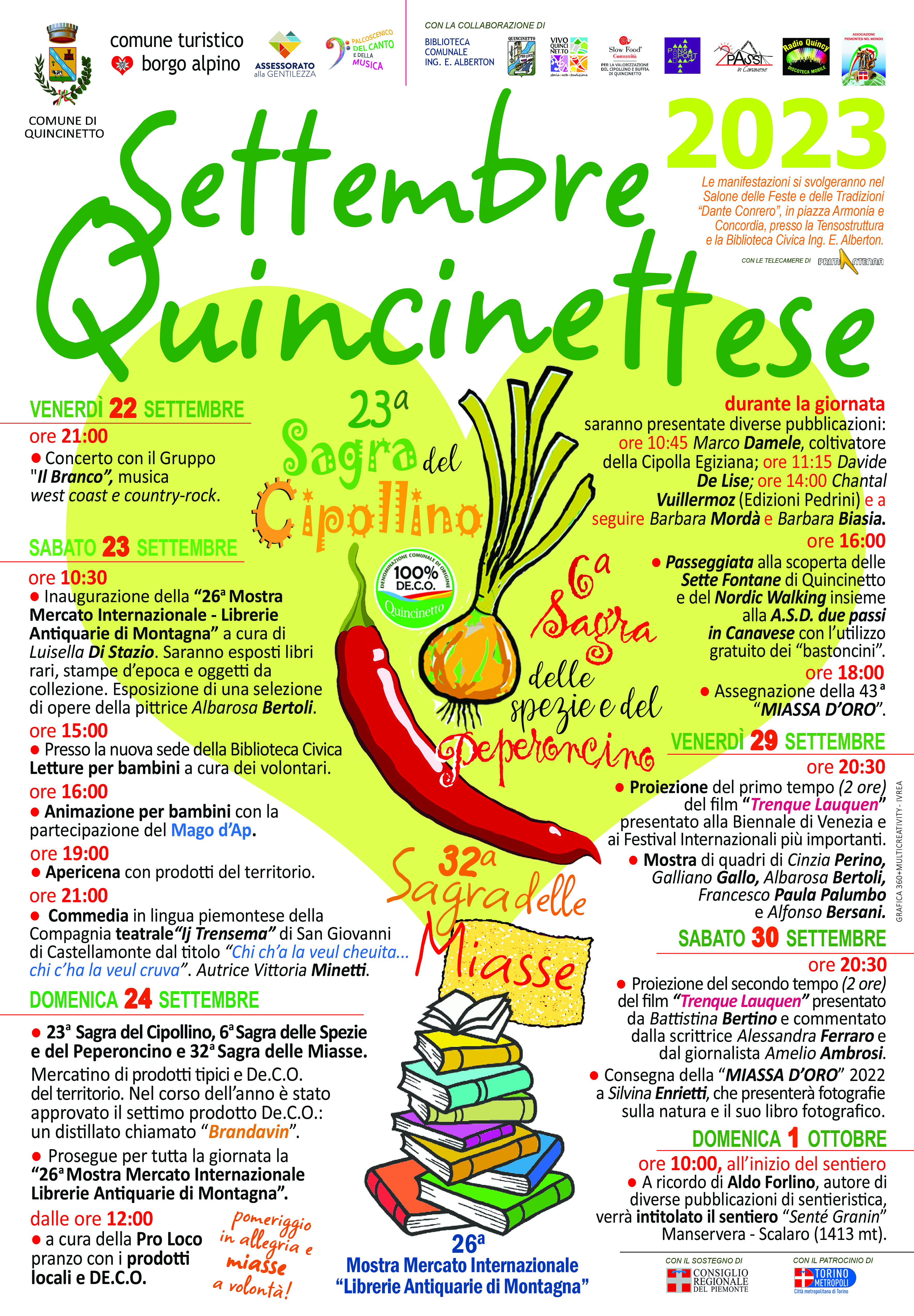 Dal 22 al 24 settembre presso il Salone "Dante Conrero, Piazza Armonia e Concordia e la Biblioteca Comunale: