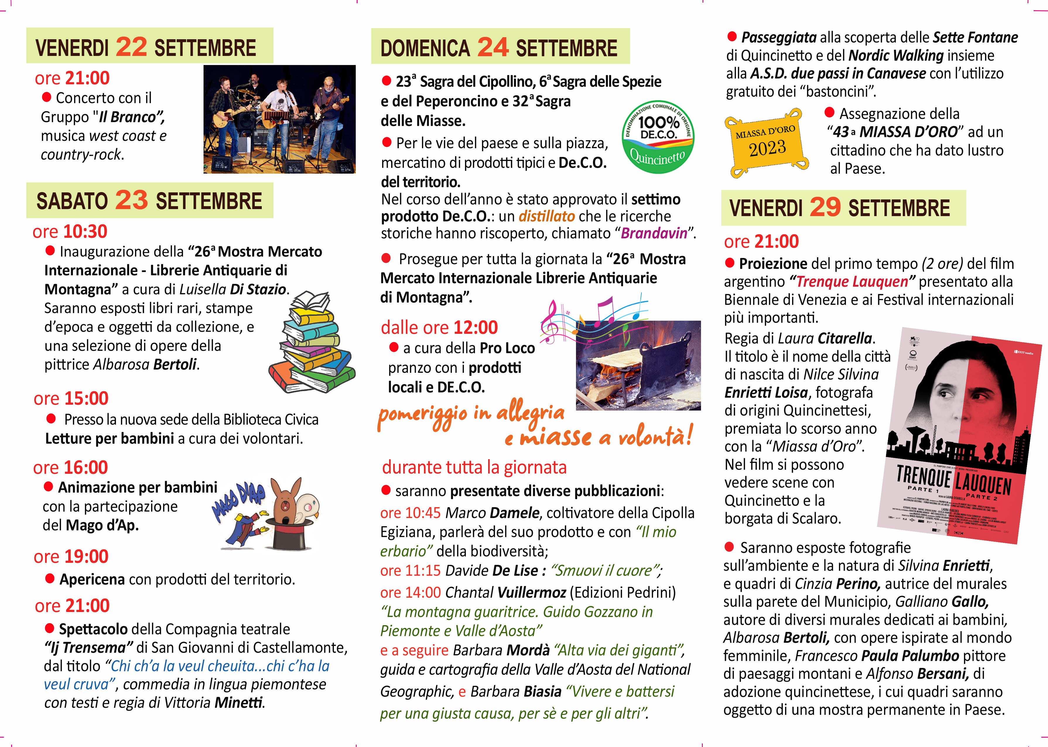 Dal 22 al 24 settembre presso il Salone "Dante Conrero, Piazza Armonia e Concordia e la Biblioteca Comunale: